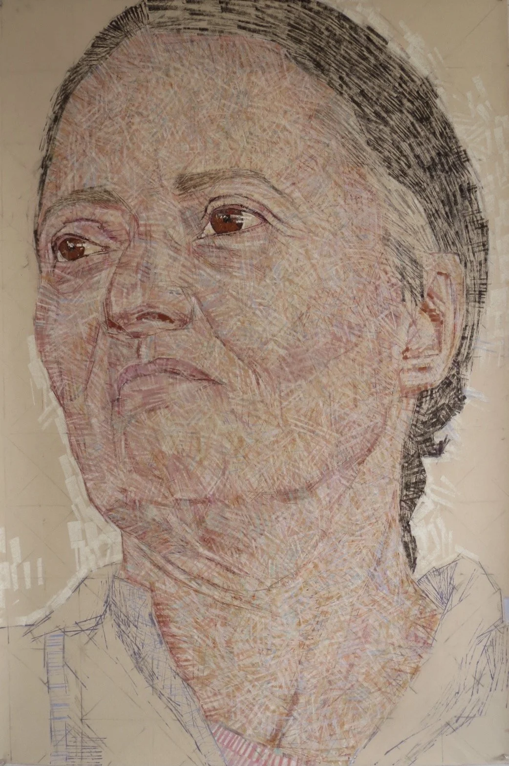 The portrait project of pastelist Christopher West began in the small town of Dixon, New Mexico, three years ago. Starting with portraits of his family, West expanded to about eighty large-scale portraits of members of the community, and the project is ongoing.
